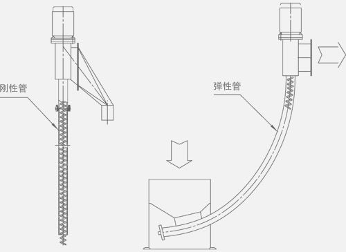 彈簧螺旋輸送機由電動機直接帶動彈簧螺旋作高速旋轉(zhuǎn),在彈簧螺旋的整個輸送長度上的任一對應(yīng)點都產(chǎn)生相同的軸向推力和離心力,離心力將被輸送的物料甩擠至彈簧螺旋的外徑與輸送管之間的空隙處,依靠物料的內(nèi)磨擦力,由彈簧螺旋的軸向力將物料作軸向推移,從而達到輸送的目的。