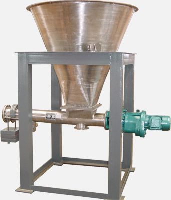 出料螺旋機與供料的稱重料斗剛性地聯(lián)結(jié)為一體,對其進行稱重是根據(jù)單位時間內(nèi)重量損失量,將實際給料速率與設(shè)備給料速率進行比較,由可編程序控制器控制變頻調(diào)速器,從而控制出料螺旋的出料量,使給料速率始終準確地符合設(shè)定值。而在短時間的加料過程中,出料裝置借助重力式工作期間存儲的控制信號,按容積式原理工作。