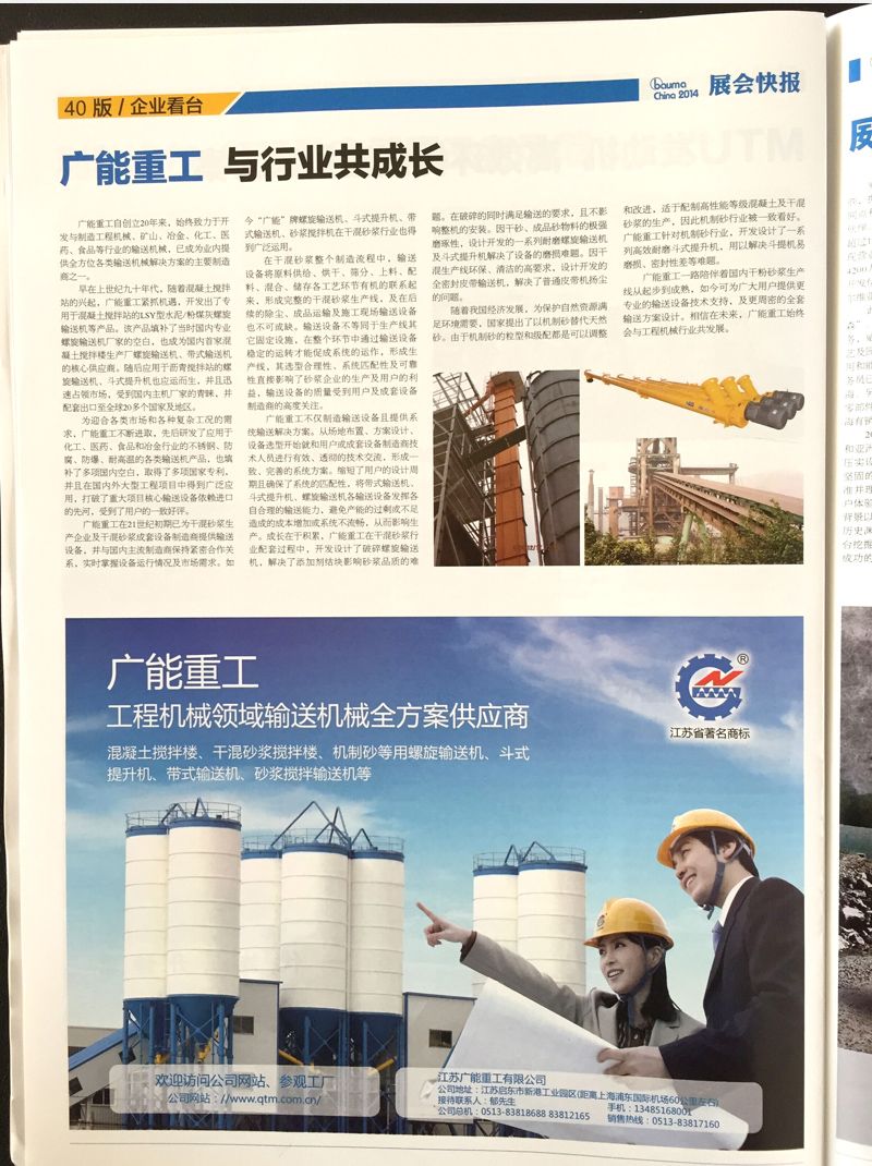 中國國際工程機(jī)械、建材機(jī)械和工程車輛及設(shè)備博覽會于2014年11月25日在上海新國際博覽中心舉行,我公司產(chǎn)品在會展快報進(jìn)行了全方位介紹!