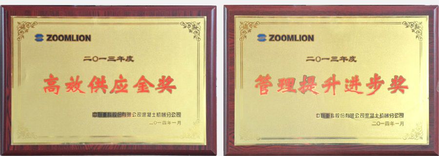 2014年1月15日,中聯(lián)重科供應(yīng)商年會在長沙召開,我公司作為中聯(lián)重科重要供應(yīng)商之一,被中聯(lián)重科授予“高效供應(yīng)金獎”和“管理提升進步獎”。