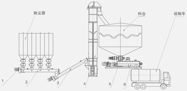 1.雙層聯(lián)鎖閥; 2.集塵螺旋輸送機; 3.轉(zhuǎn)運螺旋輸送機;